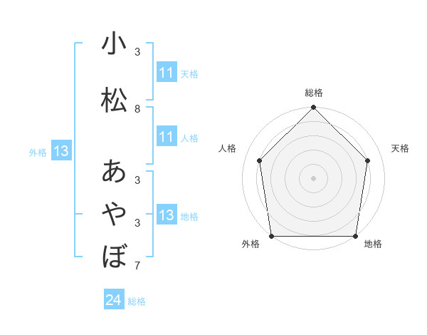 小松 あやぼさんの外格は13画の5点!