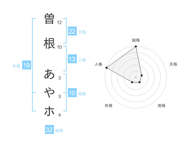 曽根 あやホさんを姓名の画数から五運を鑑定