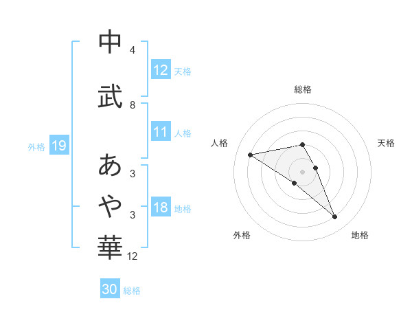 中武 あや華さんの天格は12画の1点!