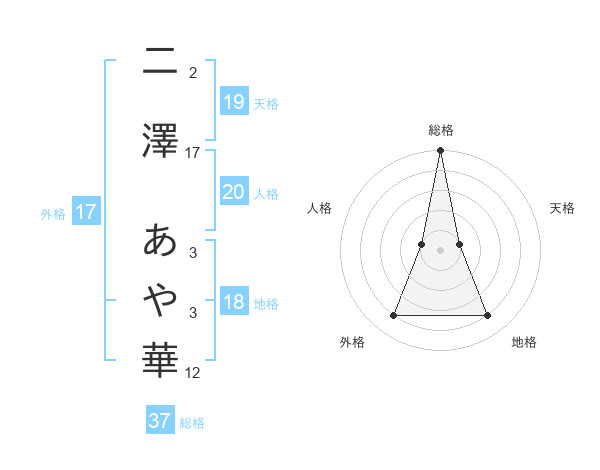 二澤 あや華さんを姓名の画数から五運を鑑定