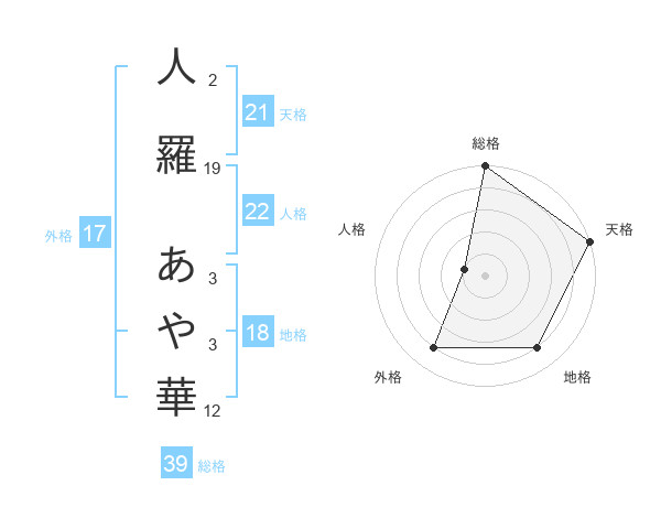 人羅 あや華さんの総格は39画の5点!