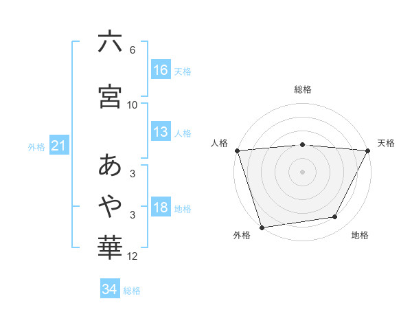六宮 あや華さんを姓名の画数から五運を鑑定