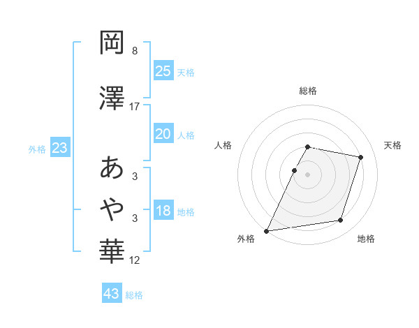 岡澤 あや華さんの天格は25画の4点!