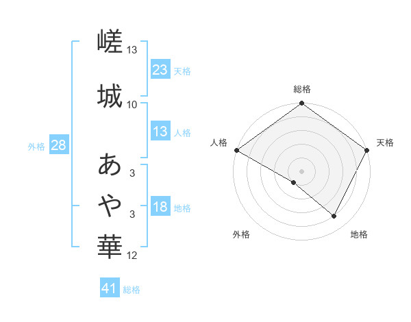 嵯城 あや華さんの天格は23画の5点!
