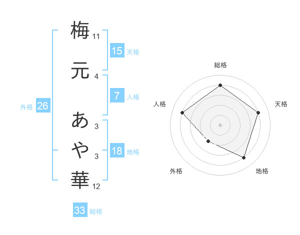梅元 あや華さんの天格は15画の4点!