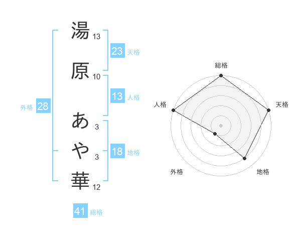 湯原 あや華さんを姓名の画数から五運を鑑定