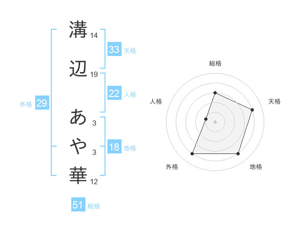 溝辺 あや華さんの総格は51画の3点!