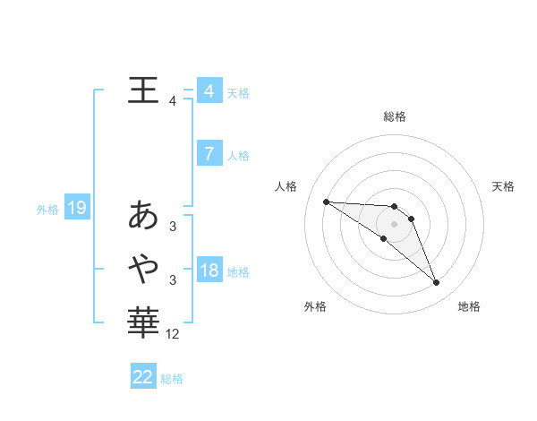 王 あや華さんの外格は19画の1点!