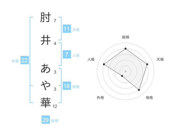 肘井 あや華さんの総格は29画の4点!