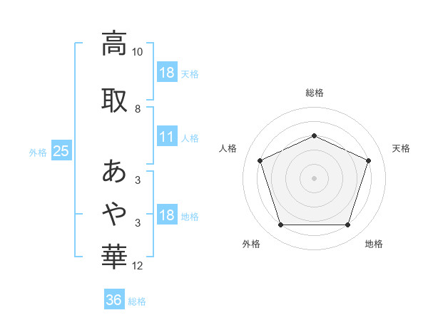 高取 あや華さんの天格は18画の4点!