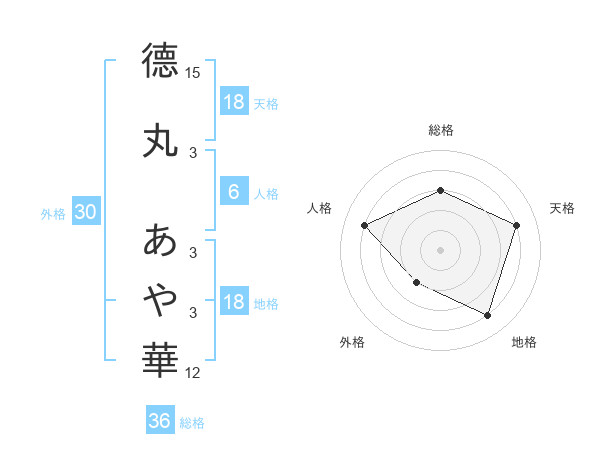 德丸 あや華さんの天格は18画の4点!