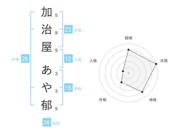 加治屋 あや郁さんの総格は38画の4点!