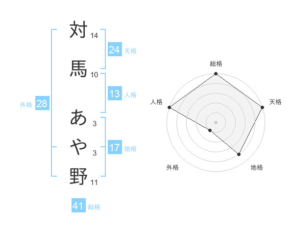 対馬 あや野さんの天格は24画の5点!