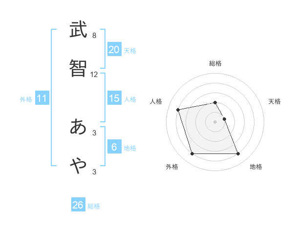 武智 あやさんの総格は26画の2点!