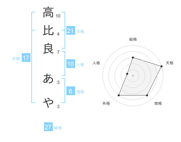 高比良 あやさんの天格は21画の5点!