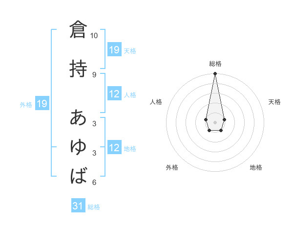 倉持 あゆばさんの総格は31画の5点
