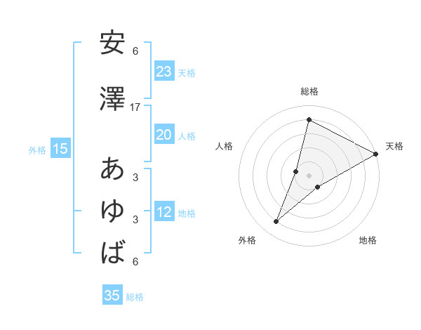 安澤 あゆばさんの天格は23画の5点!
