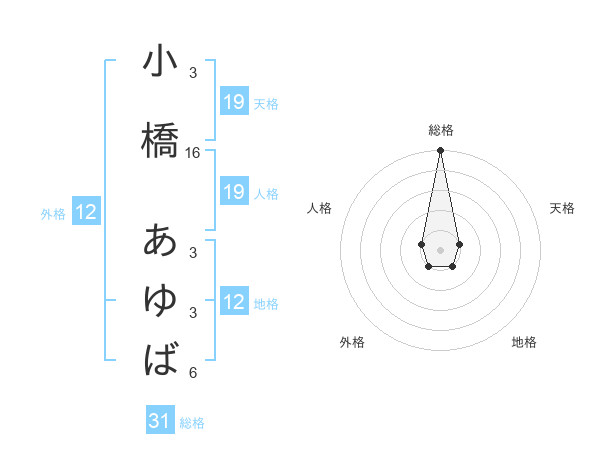 小橋 あゆばさんを姓名の画数から五運を鑑定