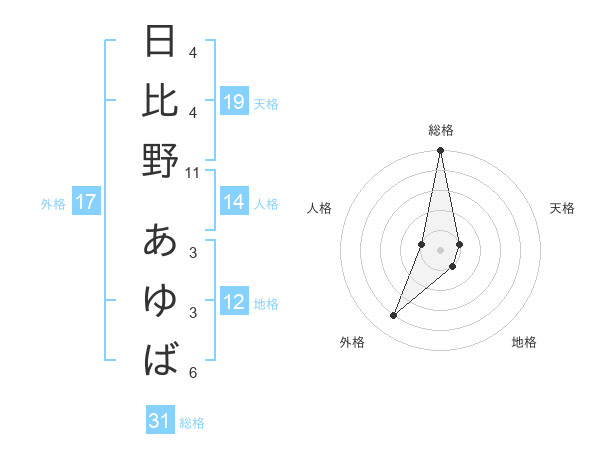 日比野 あゆばさんを姓名の画数から五運を鑑定