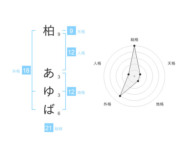 柏 あゆばさんの総格は21画の5点!