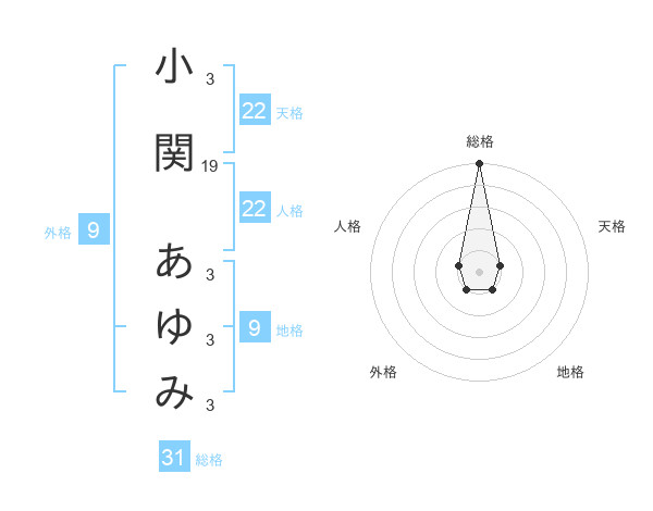 小関 あゆみさんの総格は31画の5点