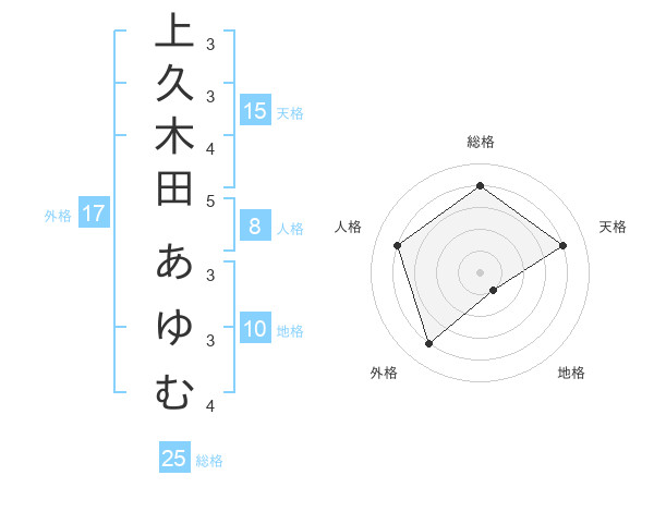 上久木田 あゆむさんの外格は17画の4点!
