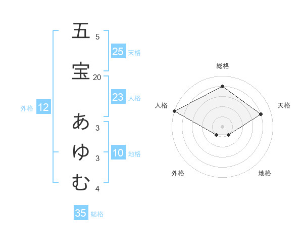 五宝 あゆむさんの総格は35画の4点!