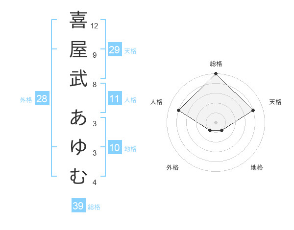 喜屋武 あゆむさんを姓名の画数から五運を鑑定