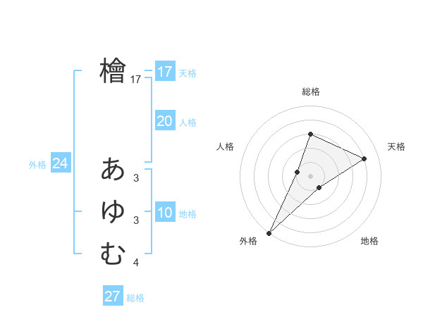 檜 あゆむさんを姓名の画数から五運を鑑定
