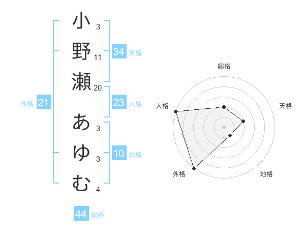 小野瀬 あゆむさんの総格は44画の2点
