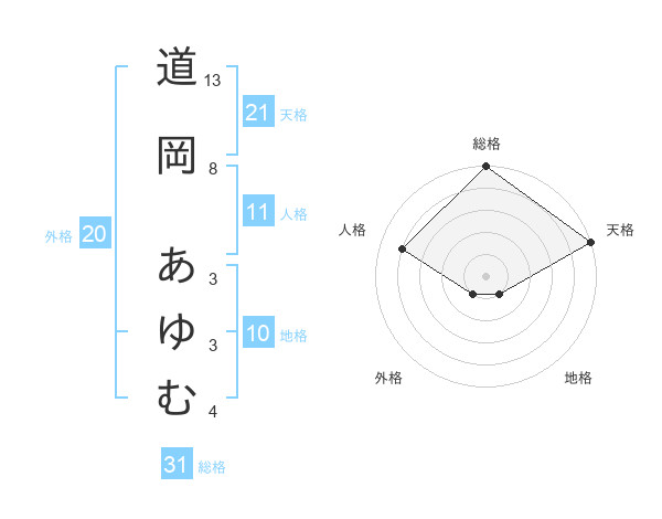 道岡 あゆむさんの総格は31画の5点!
