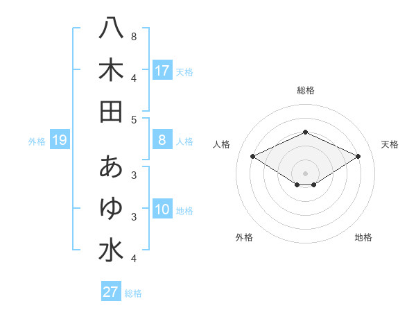 八木田 あゆ水さんの総格は27画の3点!