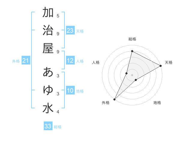 加治屋 あゆ水さんを姓名の画数から五運を鑑定