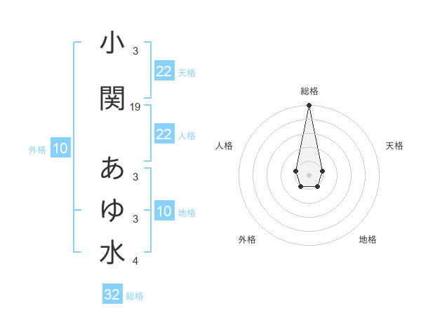 小関 あゆ水さんの総格は32画の5点!
