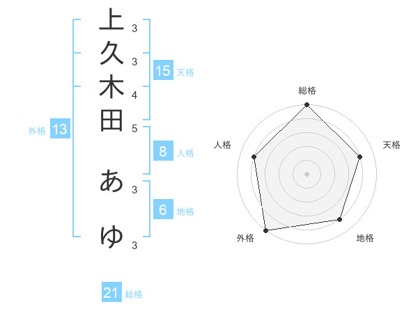 上久木田 あゆさんを姓名の画数から五運を鑑定