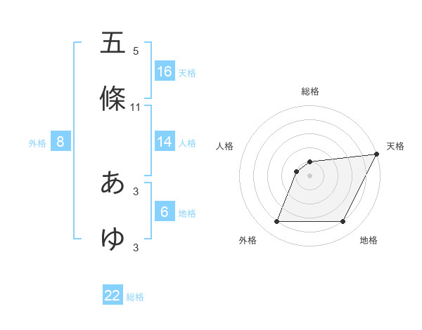五條 あゆさんの天格は16画の5点!