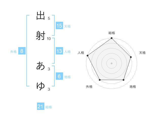 出射 あゆさんの総格は21画の5点!