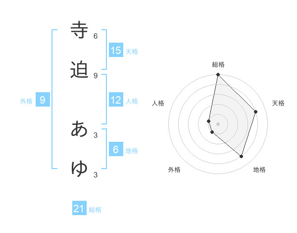 寺迫 あゆさんの総格は21画の5点!