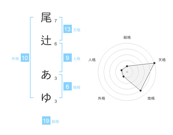 尾辻 あゆさんを姓名の画数から五運を鑑定