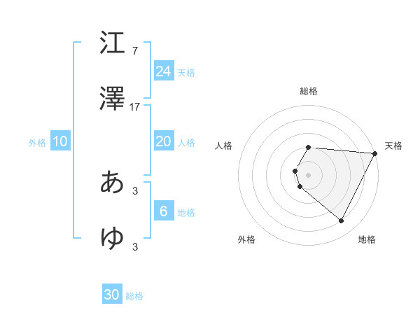 江澤 あゆさんを姓名の画数から五運を鑑定