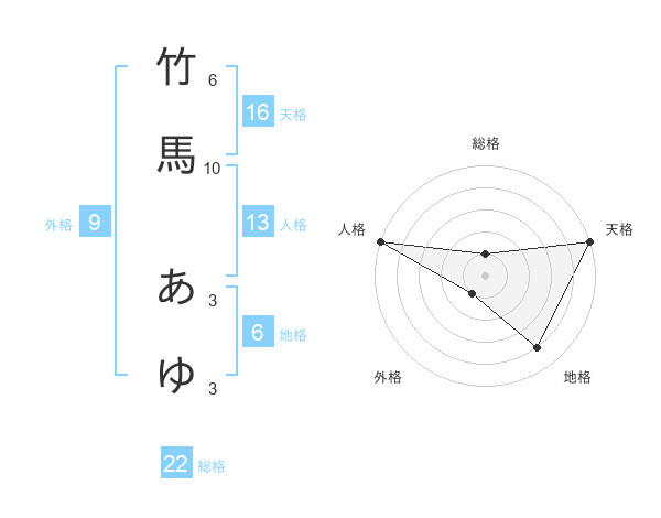 竹馬 あゆさんの総格は22画の1点!