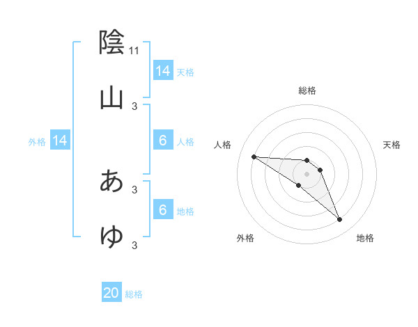 陰山 あゆさんの総格は20画の1点!