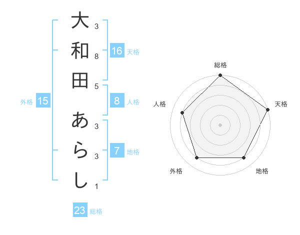 大和田 あらしさんの総格は23画の5点!