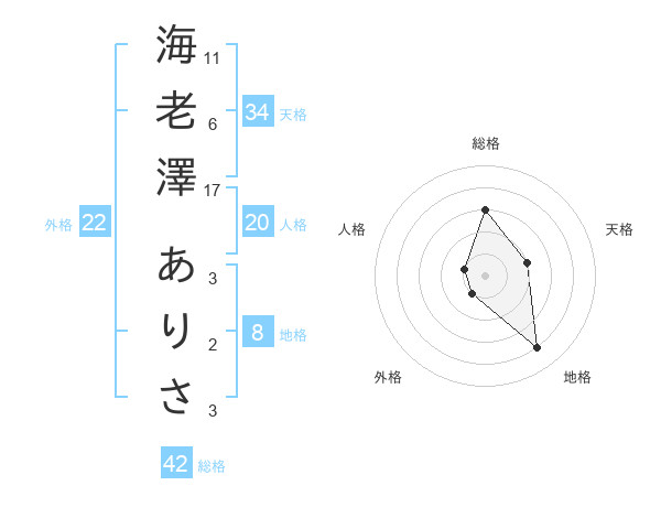 海老澤 ありささんの総格は42画の3点!
