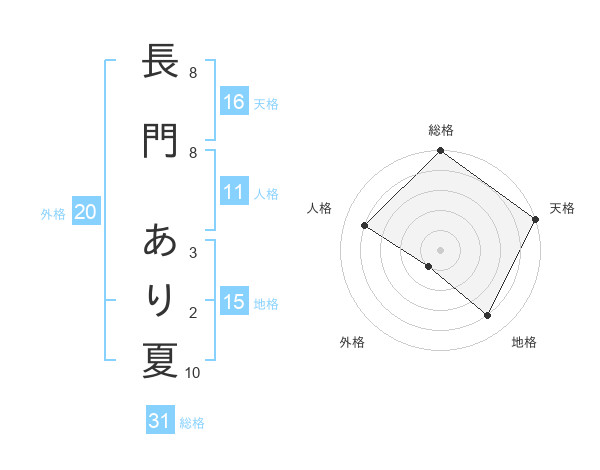 長門 あり夏さんを姓名の画数から五運を鑑定