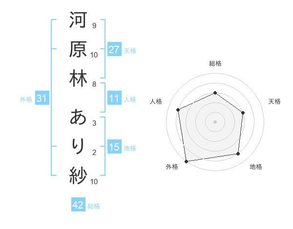河原林 あり紗さんを姓名の画数から五運を鑑定