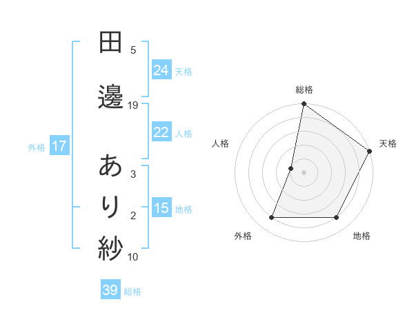 田邊 あり紗さんを姓名の画数から五運を鑑定
