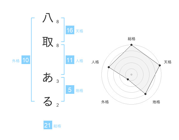 八取 あるさんの総格は21画の5点!