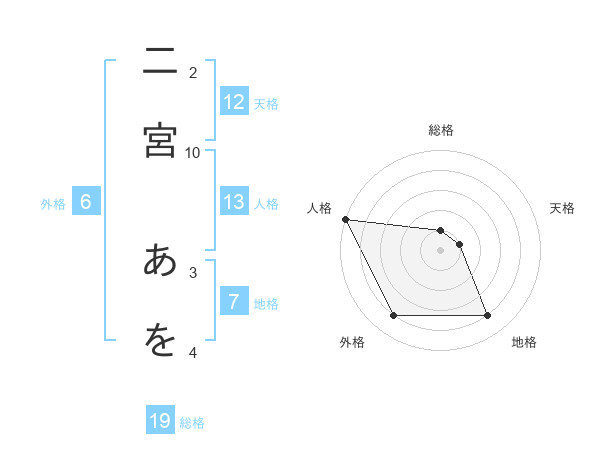 二宮 あをさんの外格は6画の4点!