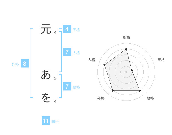 元 あをさんの総格は11画の4点!